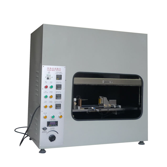 اصل تست: رشته های درخشان که مواد و شکل آنها مورد نیاز است (Ni77 / Cr20) به دمای آزمایش 550 ℃ ~ 960 ℃ برای 1 دقیقه با استفاده از تستر تیرگی با جریان بزرگ گرم می شود. سپس با استفاده از فشار مورد نیاز (0.95N) عمودی نمونه آزمون را برای 30 ثانیه سوزاند. با رعایت این که آیا نمونه تست و ملافه شستشو می گیرد یا زمان سوختن، کاربران می توانند خطر آتش سوزی محصولات الکتریکی و الکترونیکی را مورد ارزیابی قرار دهند. برای آزمایش جوش، درجه حرارت احتراق (GWIT)، آزمون اشتعال پذیری و شاخص اشتعال پذیری (GWFI) مواد عایق بندی جامد و مواد جامد قابل احتراق مورد استفاده قرار می گیرد.