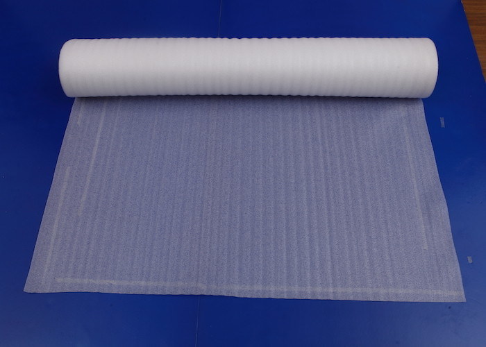 EPE Laminate Flooring Underlayment with Blue Single Foam High Thermal Insulation Specifications: EPE Flooring Underlay Specification Density 25kg/m3 Roll size 200sq.ft.(1.1m x 16.9m); 100sq.ft.(1.1m x 16.9m); Customizable Thickness 2mm 3mm 4mm 5mm, be made as your requirement Foam Color black, blue, green, red, orange, can be made as your requirement Backing Film PE film, silver film, gold film Qty. In 20 GP 16,740sqm (2mm) Qty. In 40 HQ 37,200sqm (2mm) Delivery Time within 7